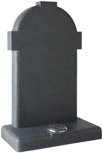 Dark Grey Granite HS: 33″ x 21″ x 3″ Base: 3″ x 24″ x 12″ This round top headstone has shaped edges to create a cross effect. The honed, matt finish improves its suitability for churchyards. £1250